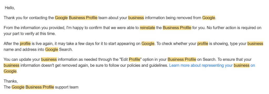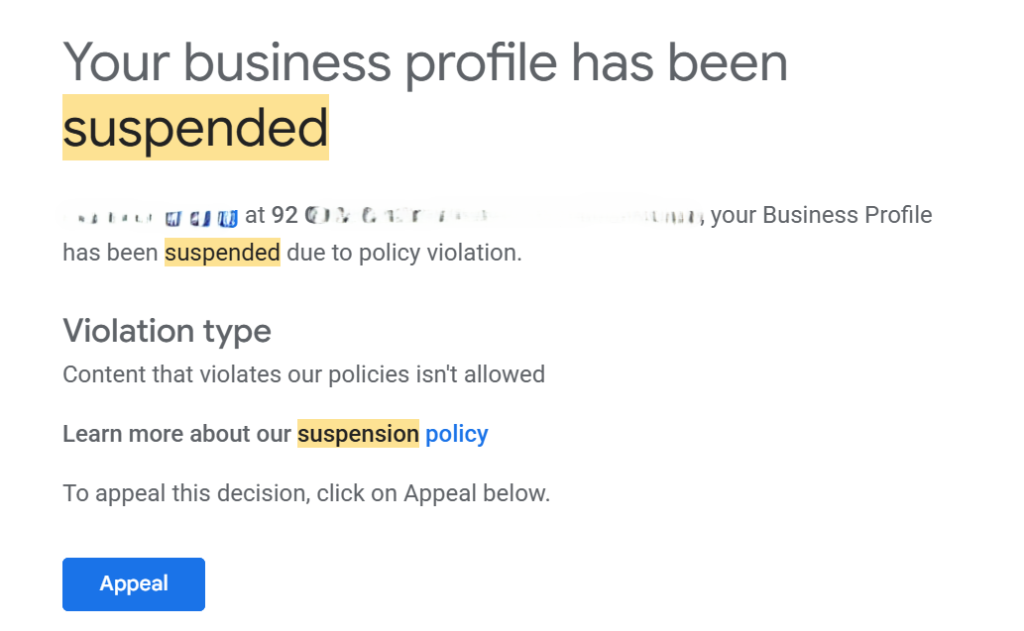 You relax. But the next morning, you wake up to a notification: “Your Business Profile has been suspended.”